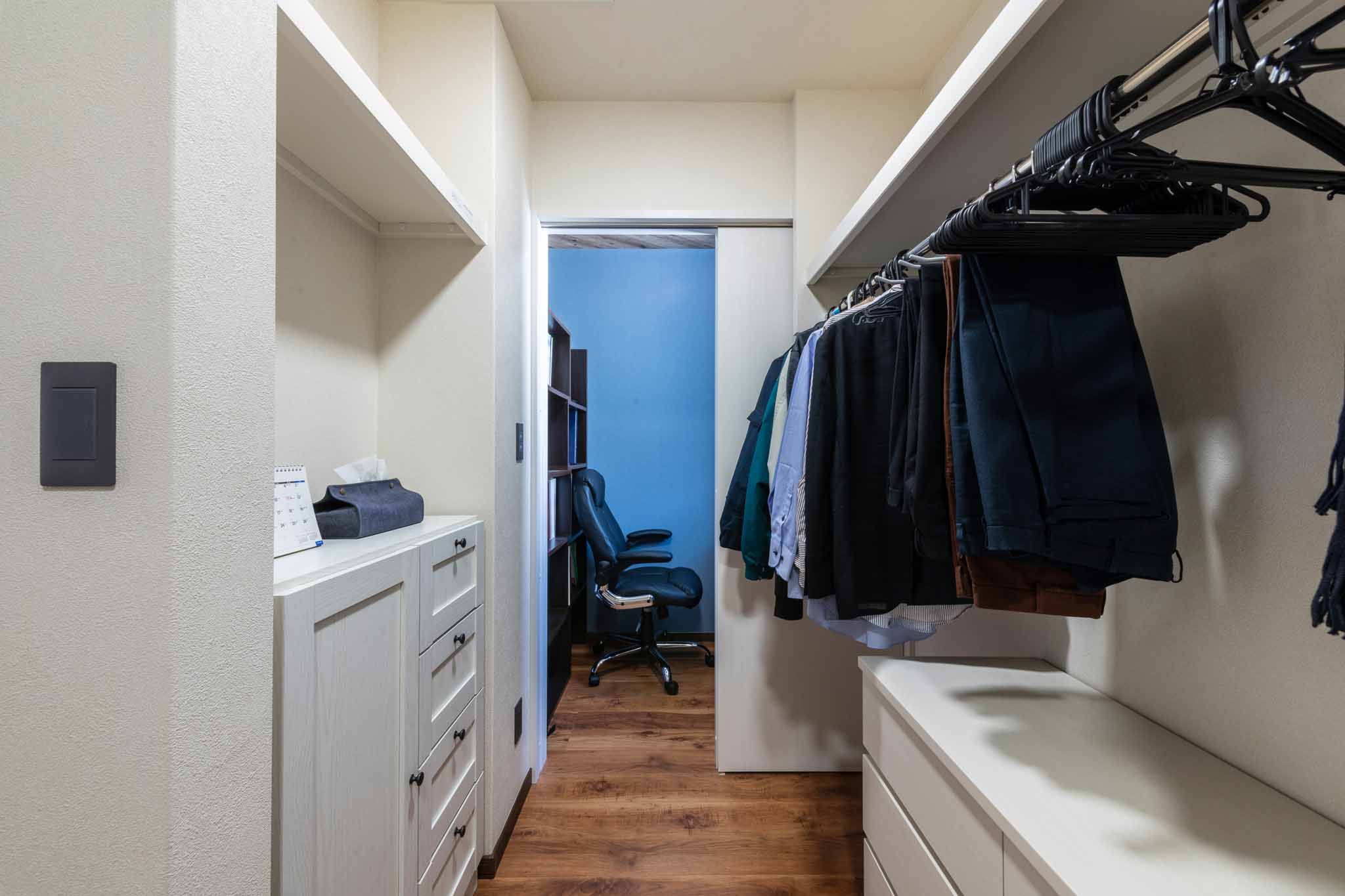 書斎:ファミリークローゼットのさらに奥には隠れ家的な書斎(1.5帖)があり、作業や趣味の時間を楽しむことができます。