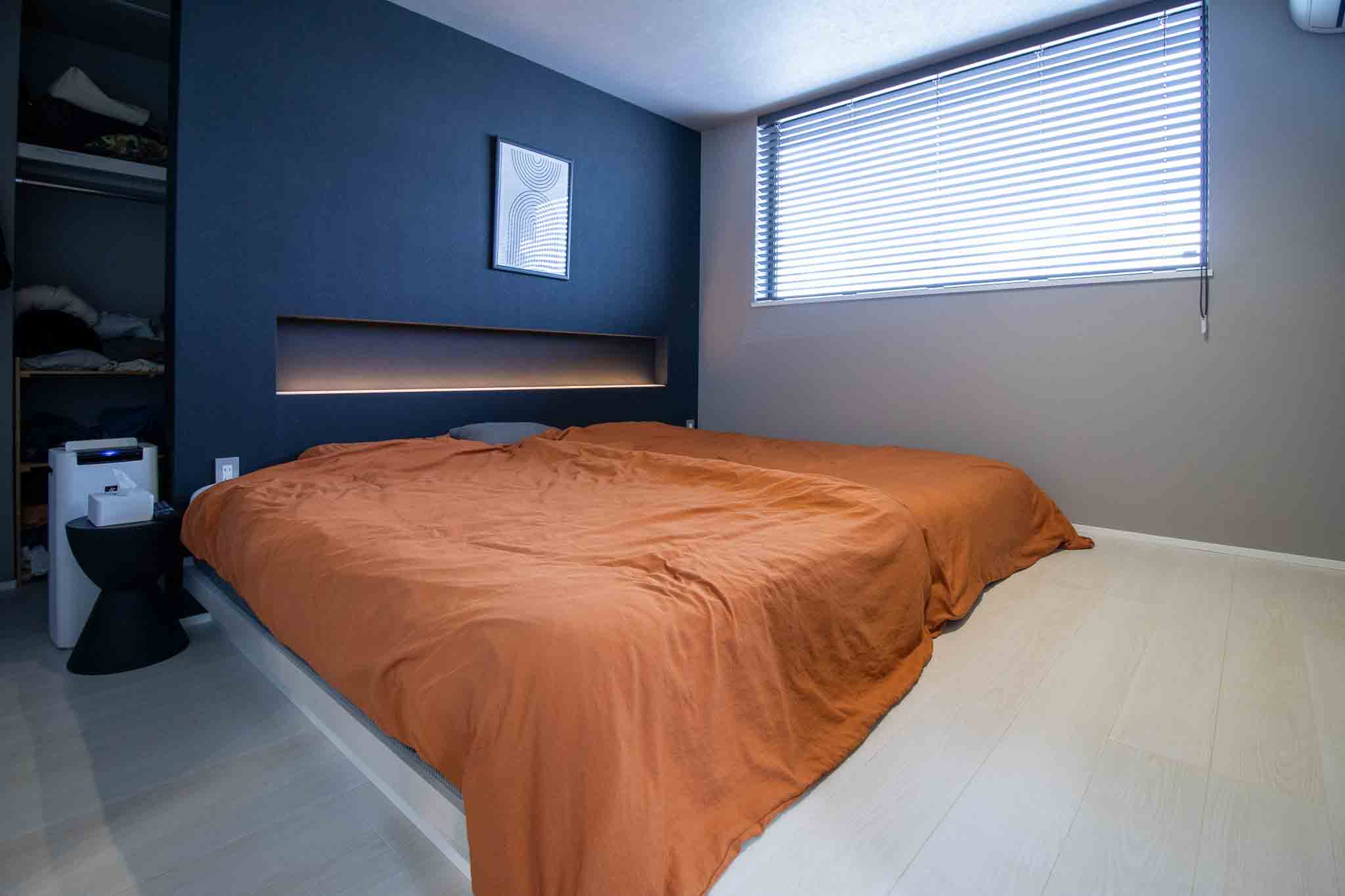 寝室:主寝室はフットライトと小上がりが空間にアクセントを加え、落ち着いた雰囲気を醸し出しています。幅広のウォークインクローゼットも備えており、収納力も抜群です。また、広いバルコニーがあり、屋外空間を楽しむことができます。