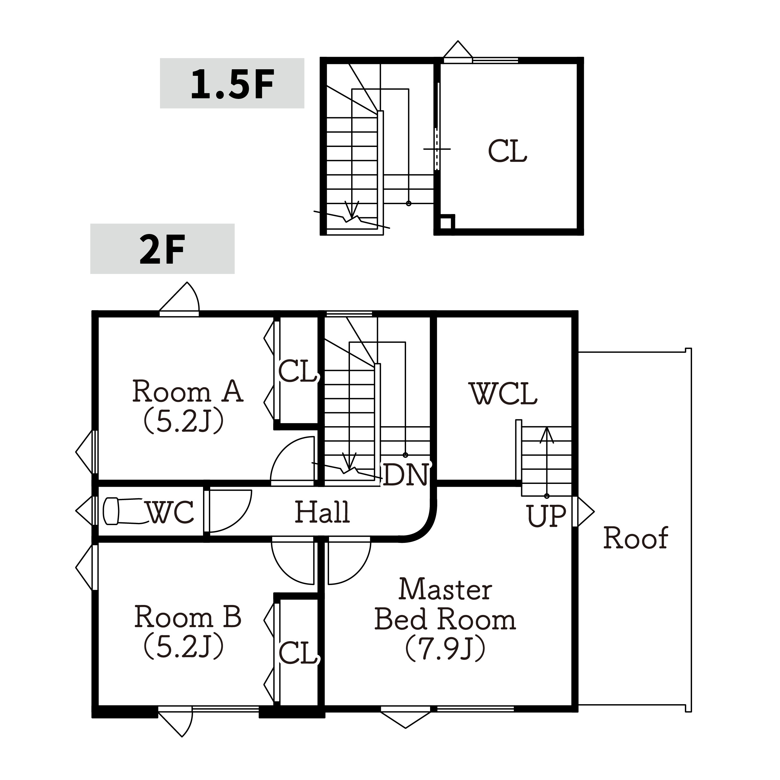 1F/56.72㎡[17.12坪] 2F/49.27㎡ [14.87坪] 延床面積/105.99㎡[31.99坪] 土地面積/216.58㎡[65.51坪]