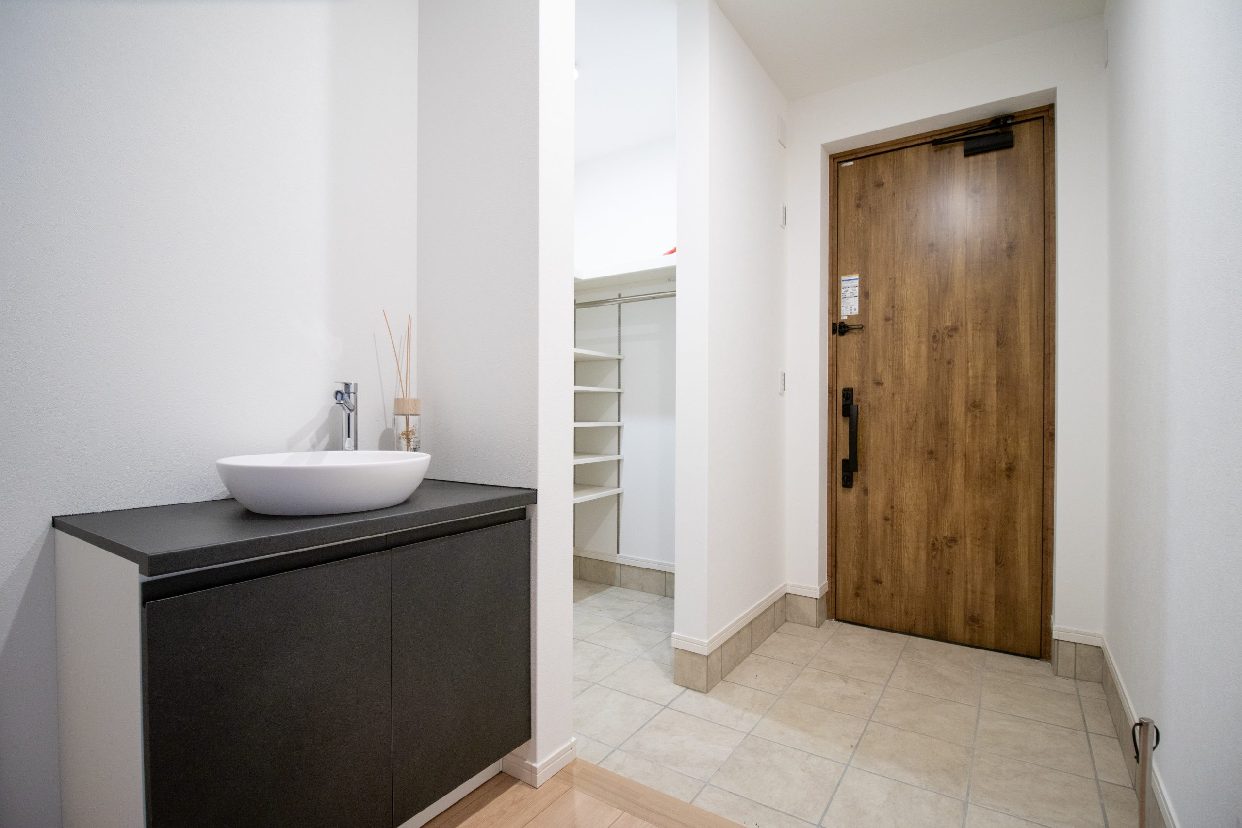 ・『玄関』玄関に洗面台を設けることで衛生面に配慮