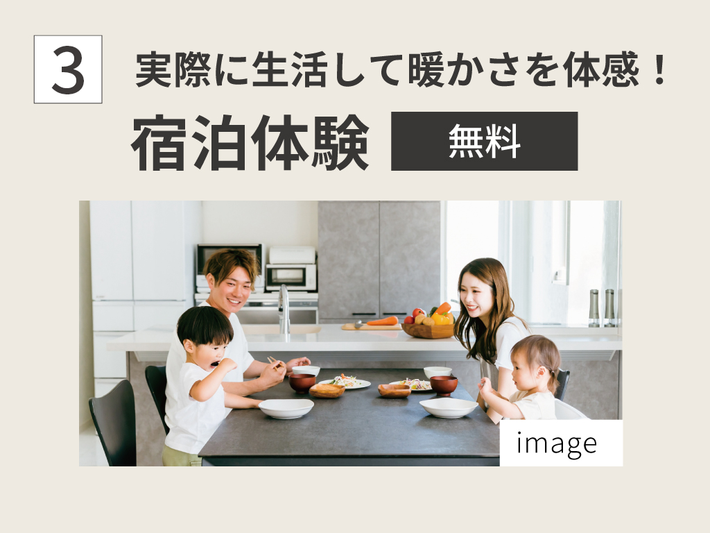 土屋ホームの住まいで1泊2日生活することで住宅性能の良さや間取りについて、体感することが出来ます。