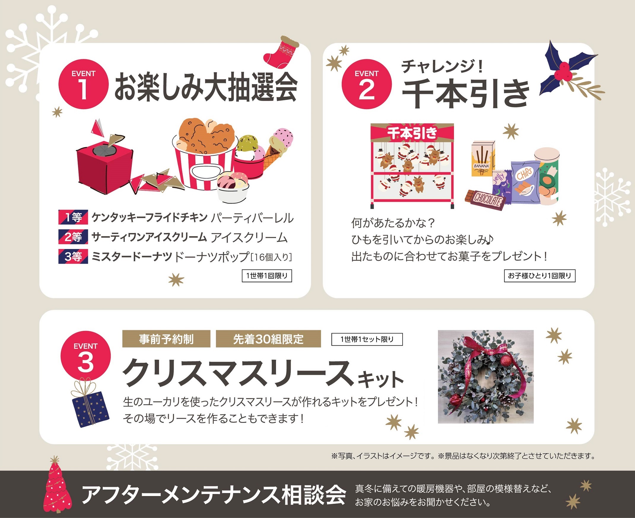 三角くじが引ける大抽選会ではクリスマスならではの景品獲得のチャンス!