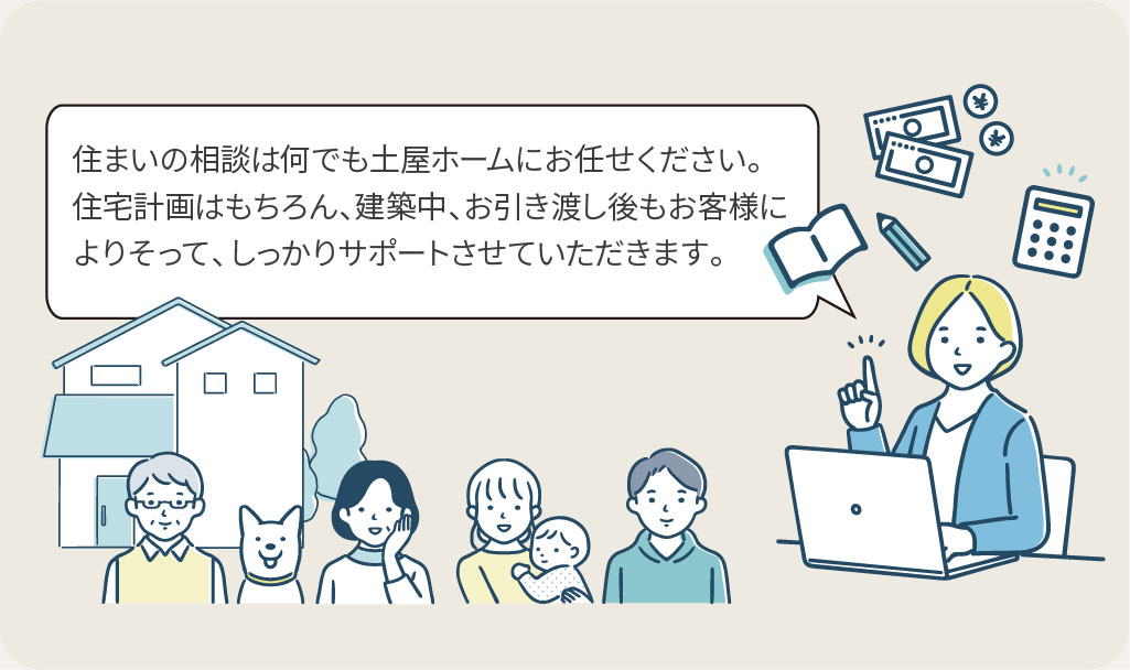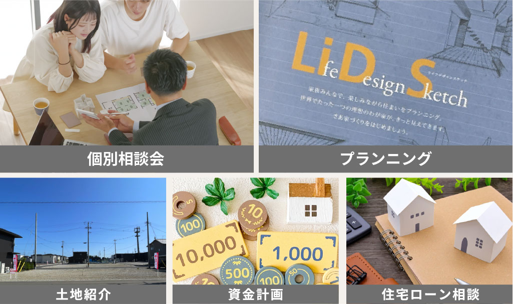 土地探し、間取りプラン、資金計画、ローン相談など、住宅計画の
