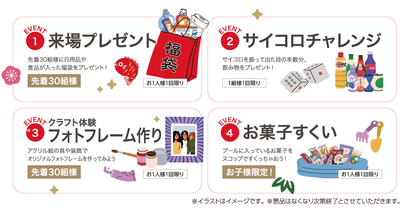 ※イラストはイメージです。景品はなくなり次第終了とさせていただきます。