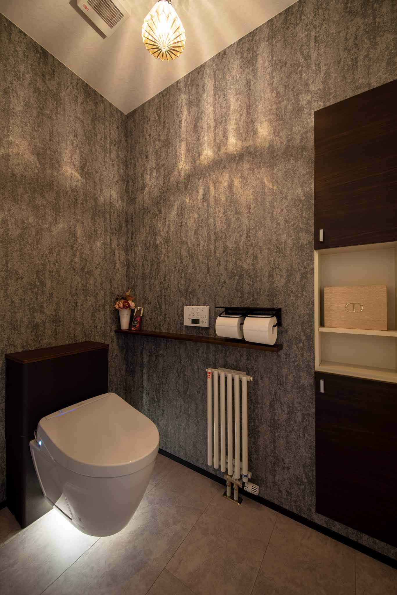 トイレ:1階のトイレは、奥さまのこだわりでカラーコーディネートやライティングに工夫を凝らし、ラグジュアリーな空間を実現しました。