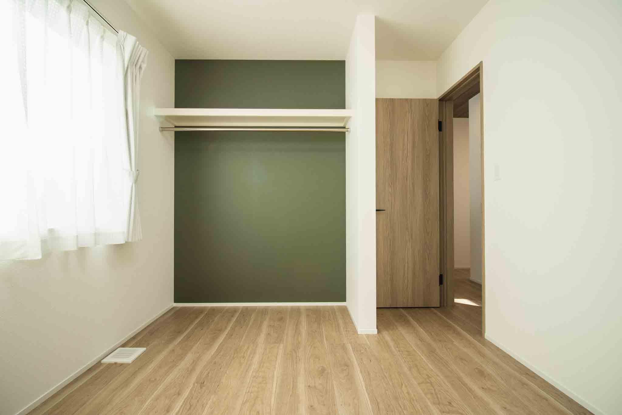 洋室:2階の洋室2部屋は、それぞれオープンタイプのクローゼットを備えています。扉がないため、部屋が広く感じられ、整理整頓がしやすい設計です。クロスの色も統一され、統一感のある空間を作り出しています。