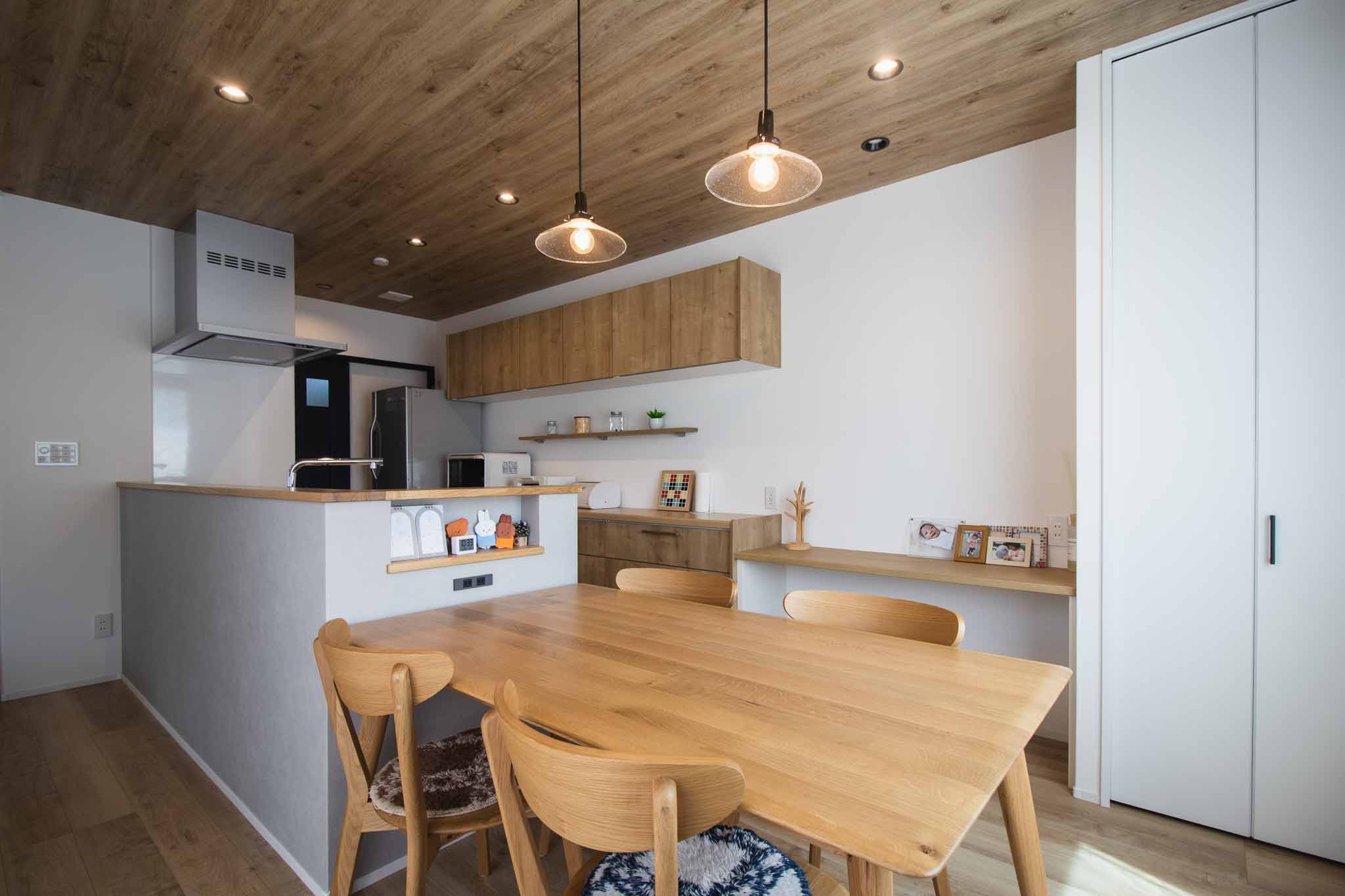 ダイニング:折り上げ天井が施されたダイニングは、木に囲まれたような温かみのある空間です。