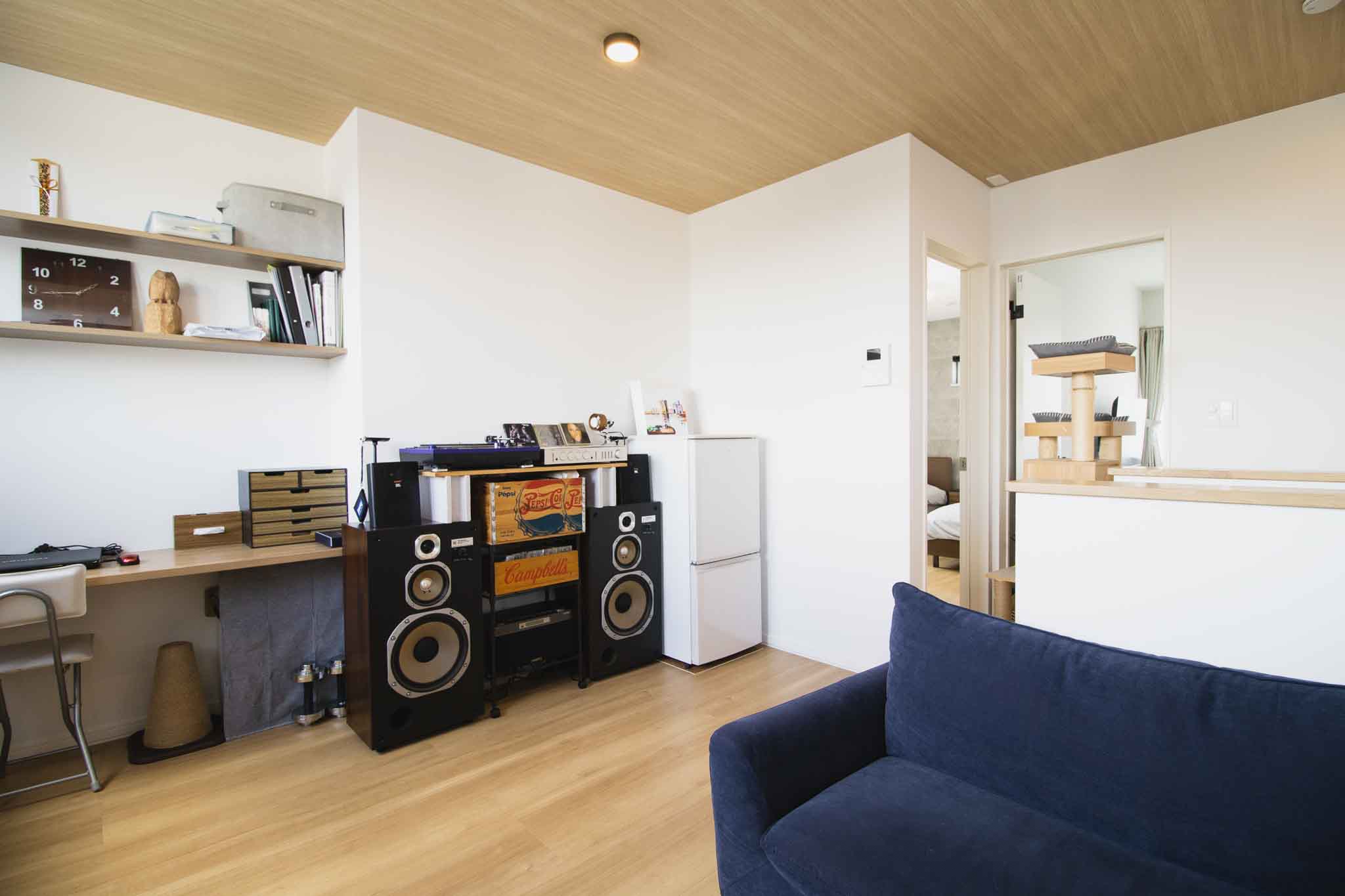 サブリビング:7帖のサブリビングはレコードやゲームを楽しむ団欒のスペース。テレワークやお子様のプレイルームとしても活用できます。