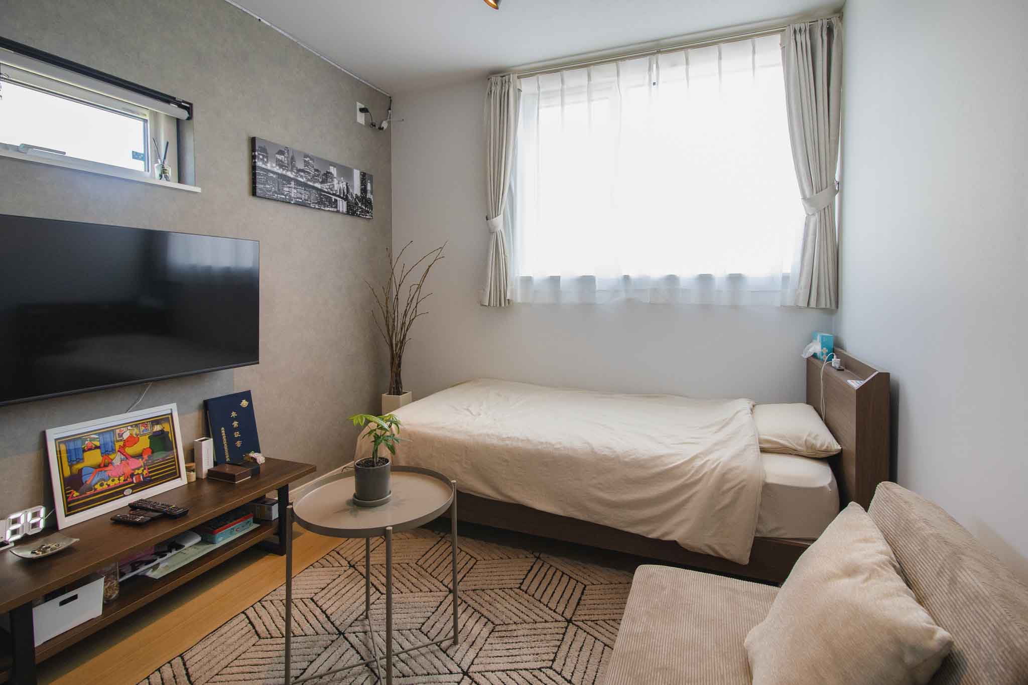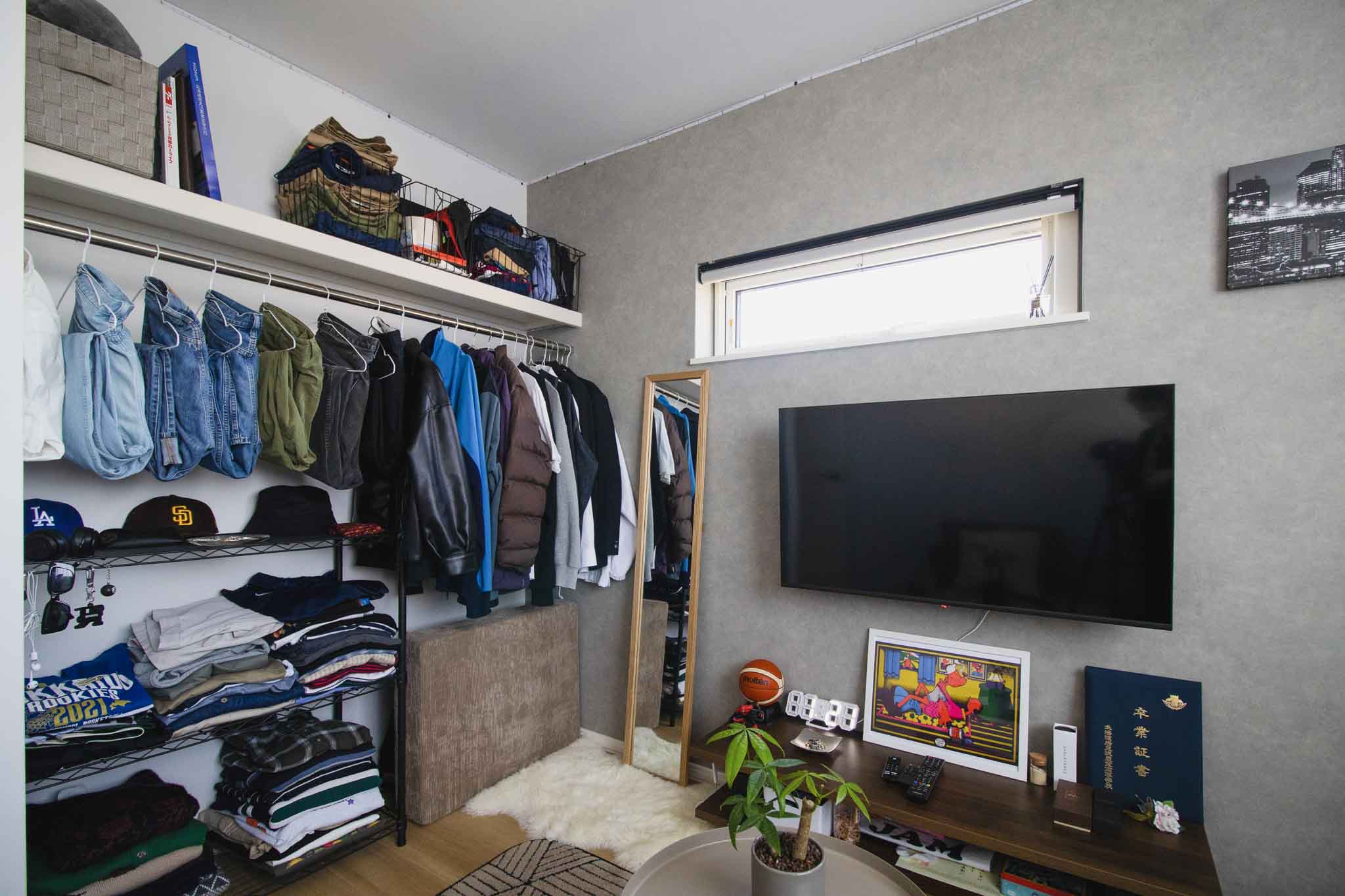 2F洋室:プロジェクター用のクロスが貼られた洋室。家族で映画を楽しんだり、趣味の部屋として活用できます。