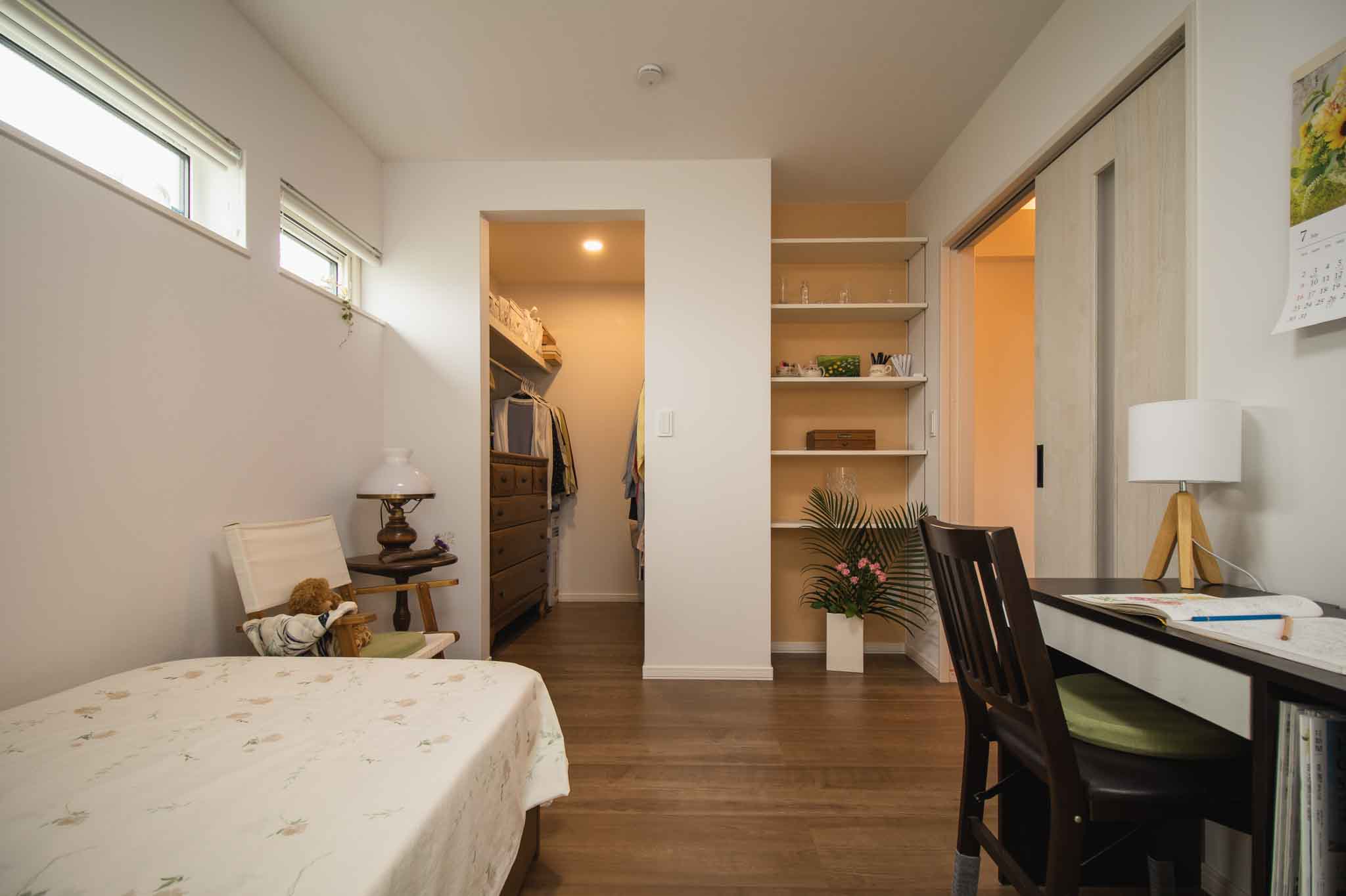 寝室:6.3帖の主寝室はウォークインクローゼットが完備されています。落ち着いた空間でリラックスできます。