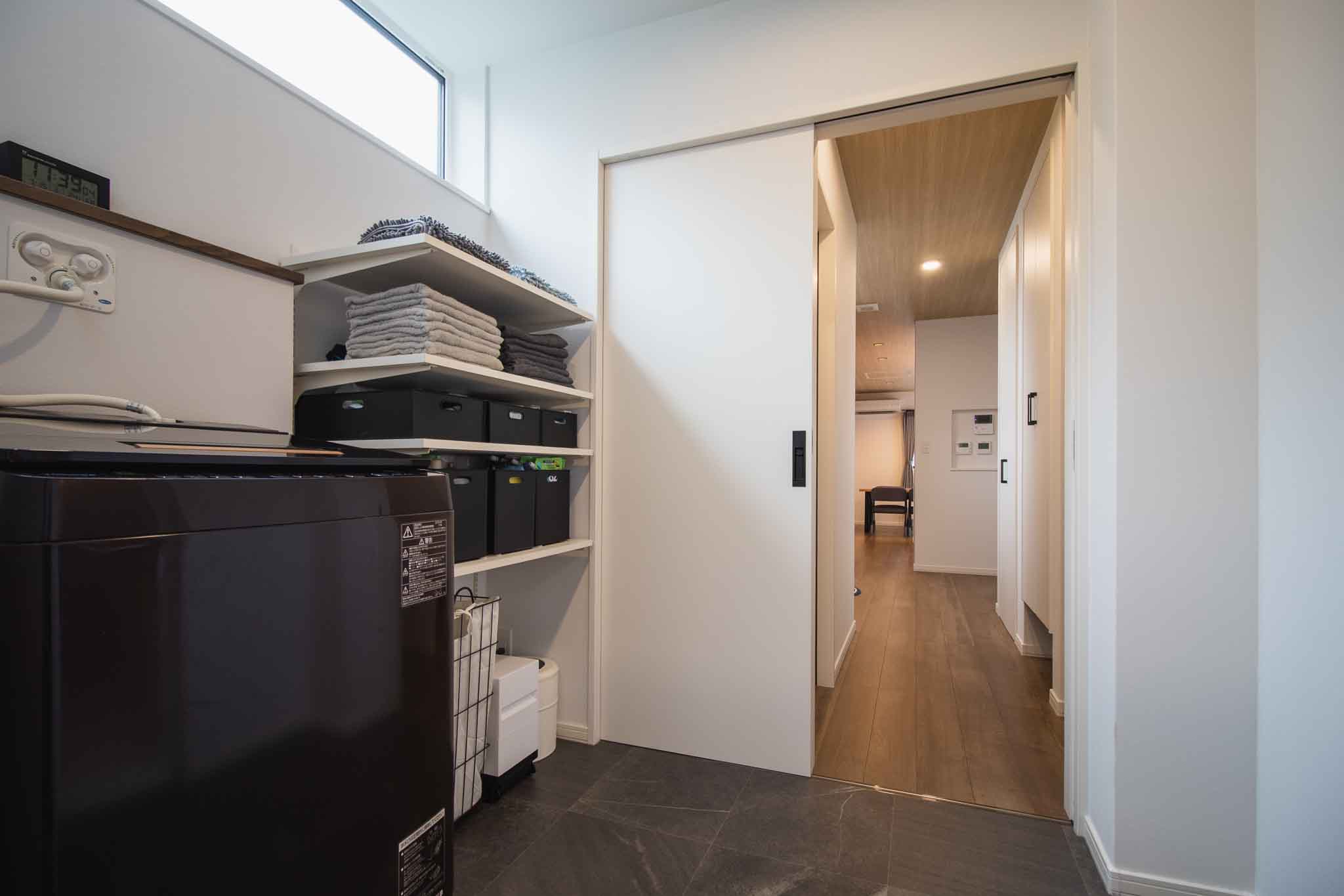 ドレッシングルーム:可動棚が設置されているため、タオルや洗剤をすっきりと収納でき、実用性に優れています。