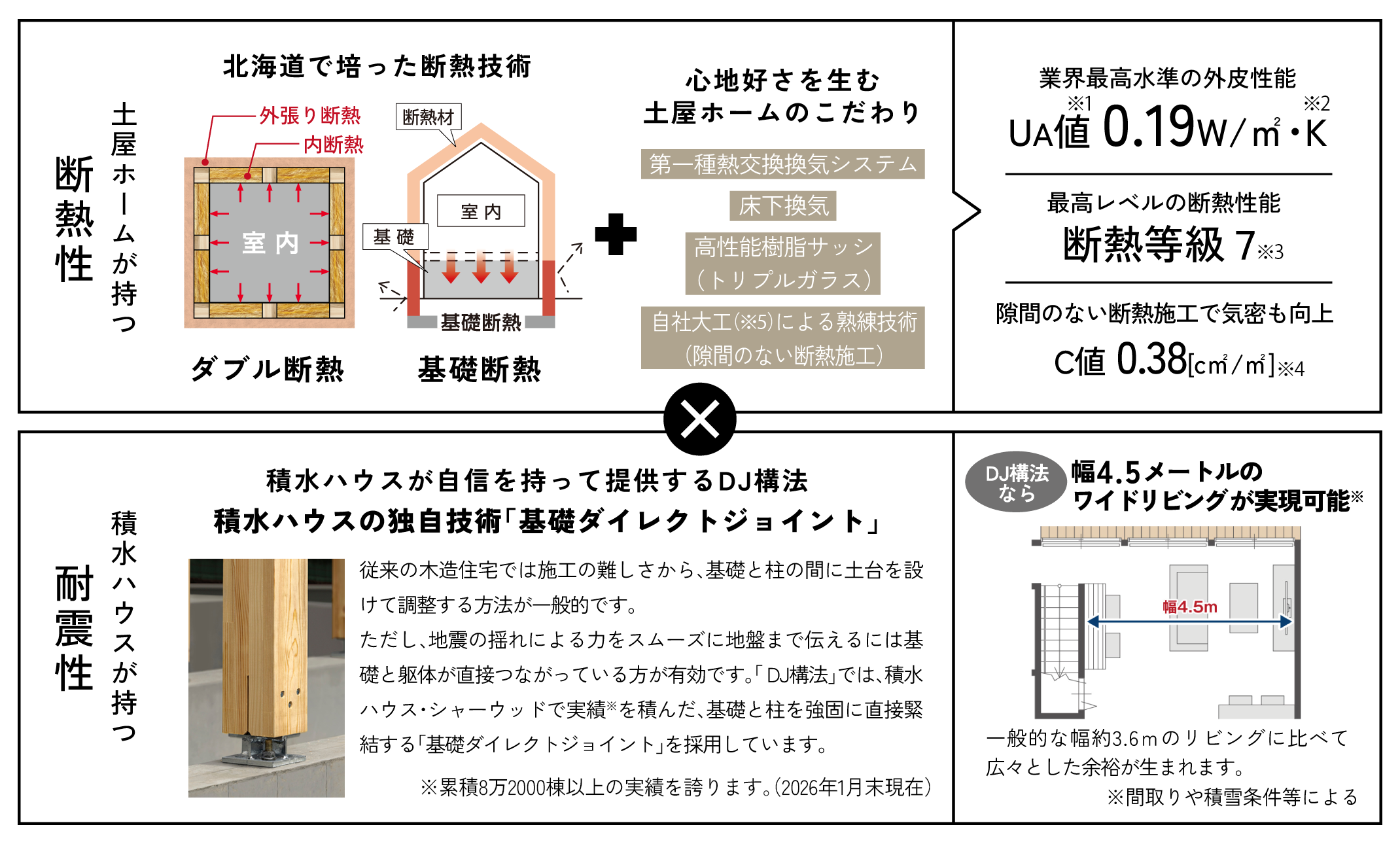 土屋ホームが北海道で培った業界最高水準の住宅性能を持つ断熱技術と積水ハウスの創業以来培って独自技術の耐震技術。