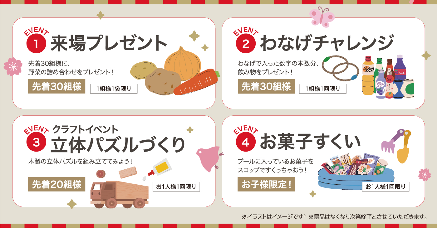 ※イラストはイメージです。景品はなくなり次第終了とさせていただきます。