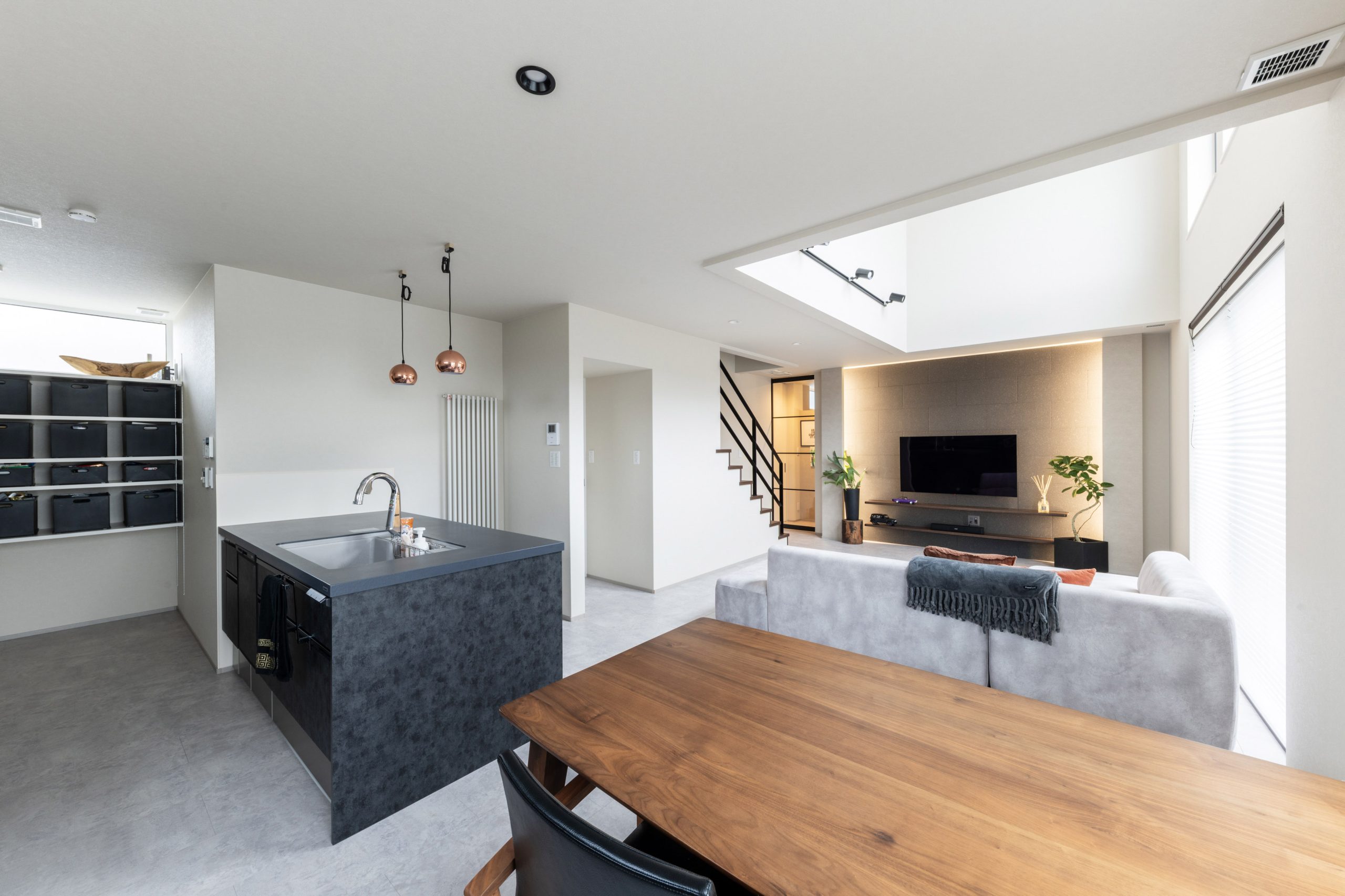 LDKをL字型に配置し、ひと続きでありながら程よい距離を保つ、緩やかなゾーニングのレイアウト。