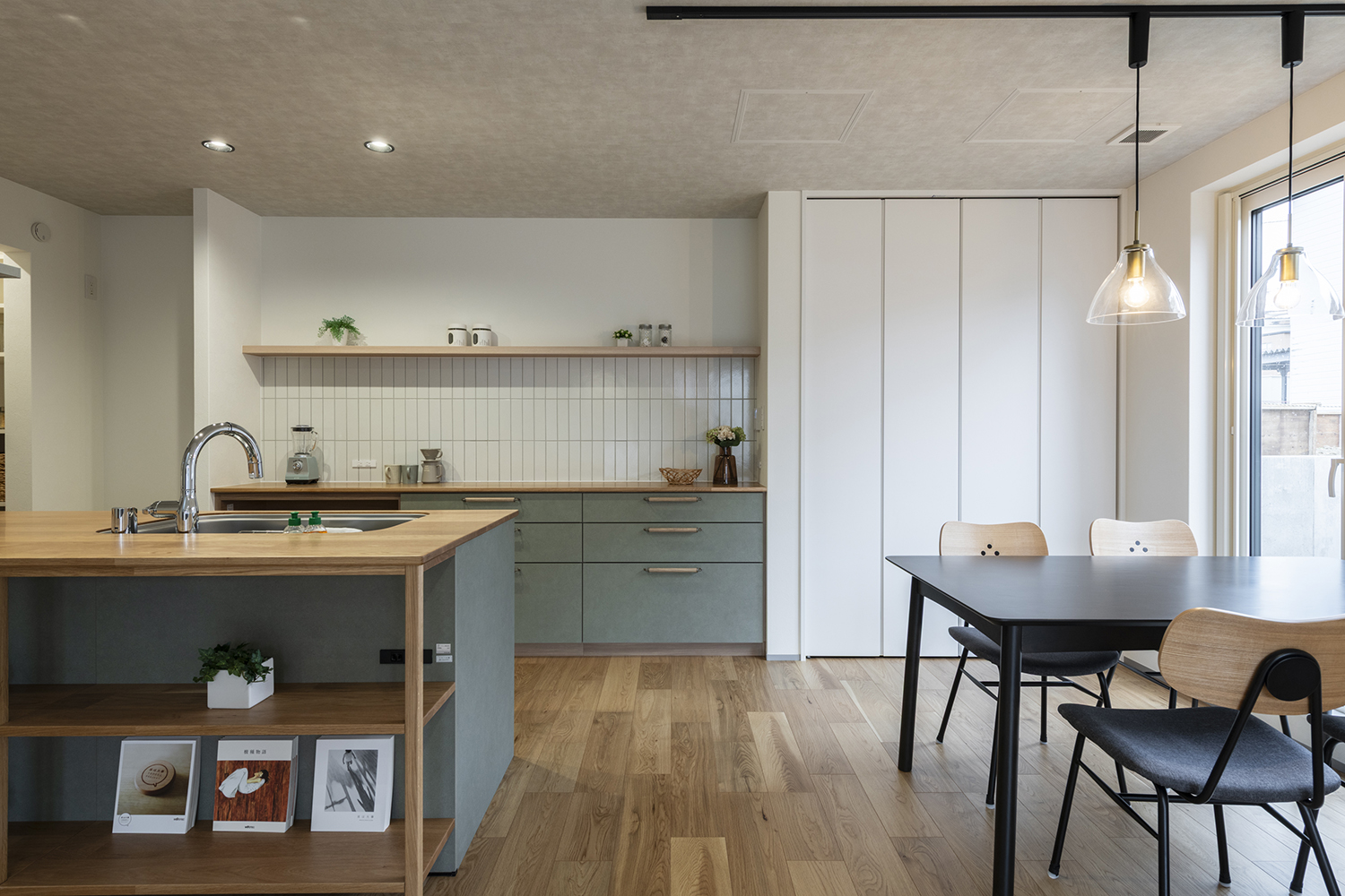 ■ダイニングキッチンは下がり天井に。緩やかなゾーニングになっています。