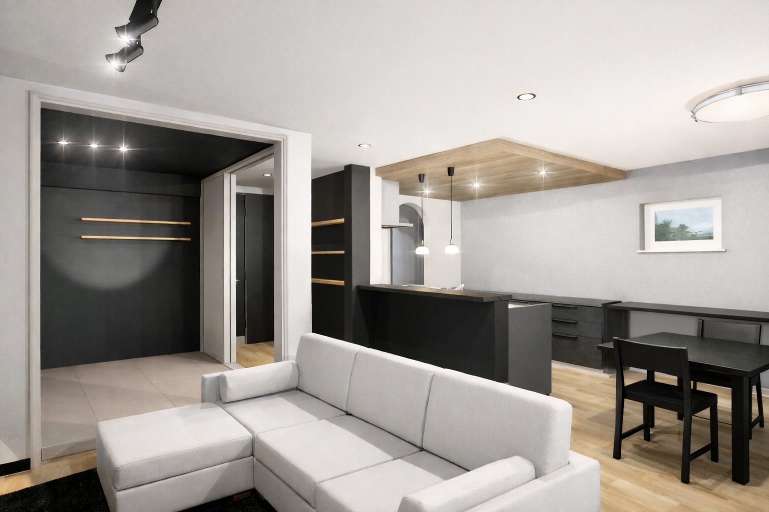 〇19.5帖のLDK。隣接した和室と合わせると24帖の空間に。