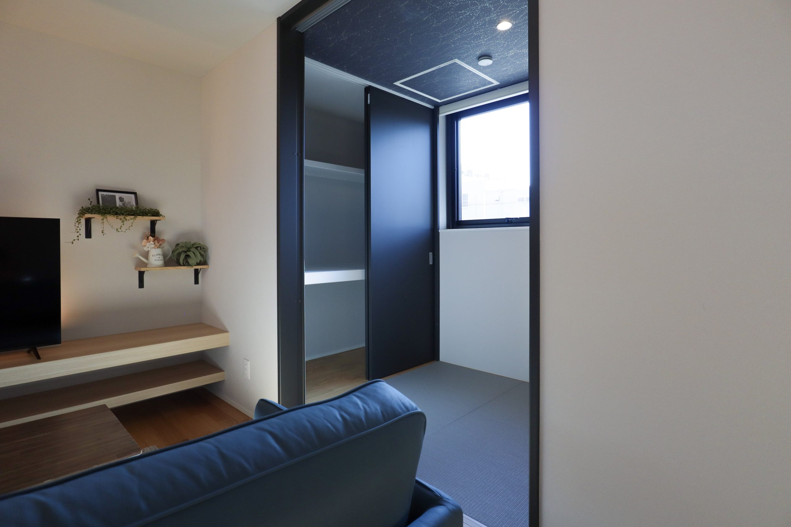 ・和室とウッドデッキが隣接しており、視覚的な広さを感じられるLDK