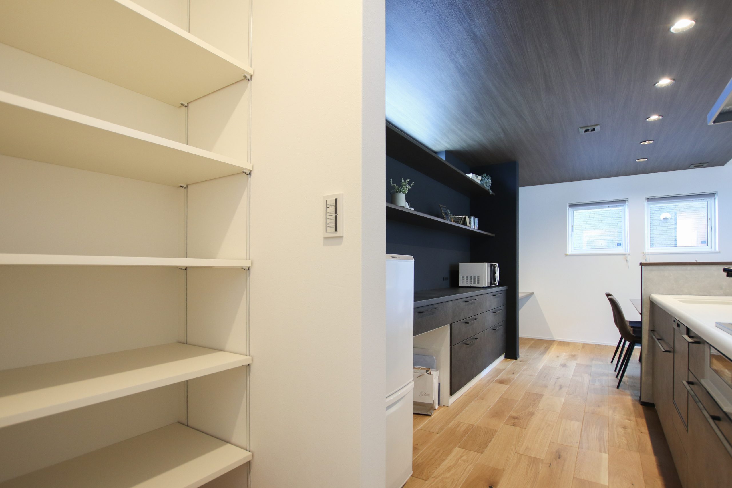 ●食品のストックや収納に便利なパントリー。玄関からのアクセスを短縮し家事負担の軽減に。