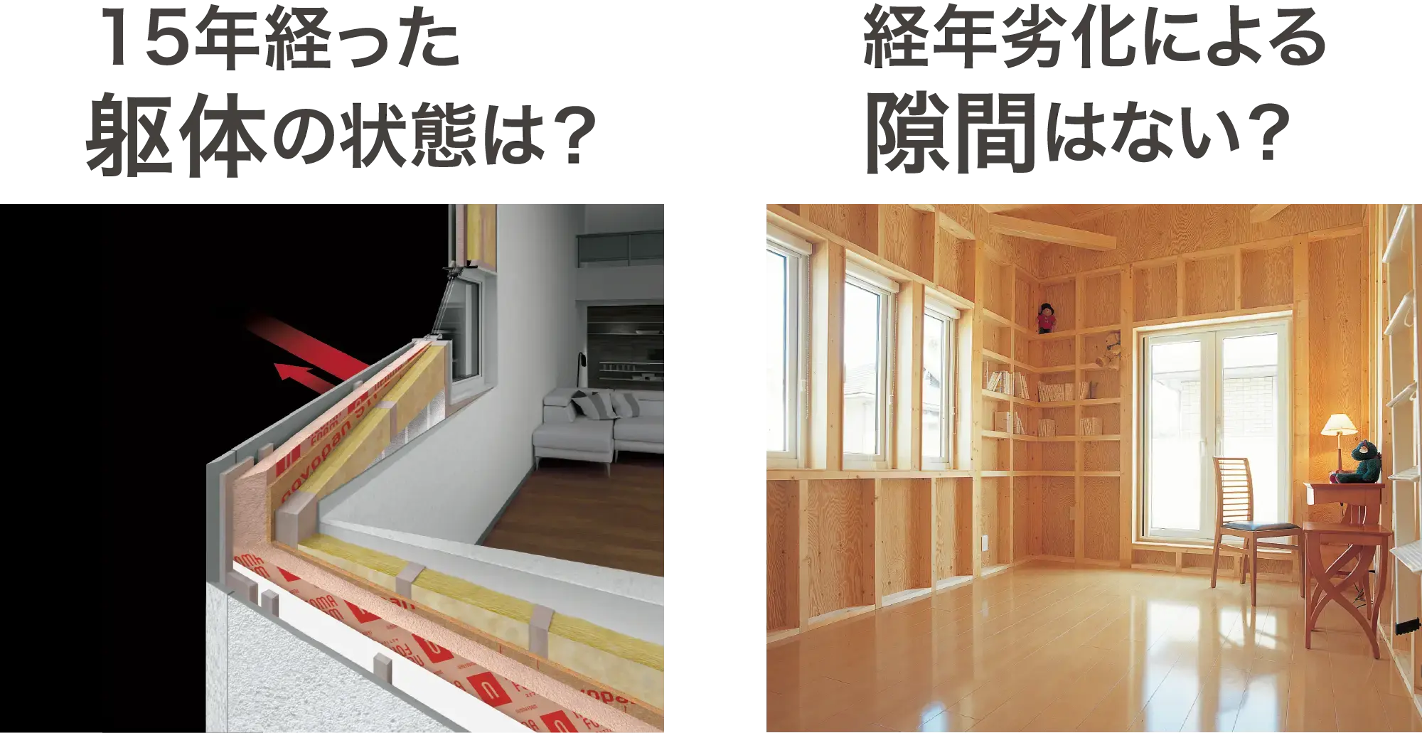 断熱材・構造材の状態や結露の有無など、15年後の住まいがどうなるか実例で理解できます。