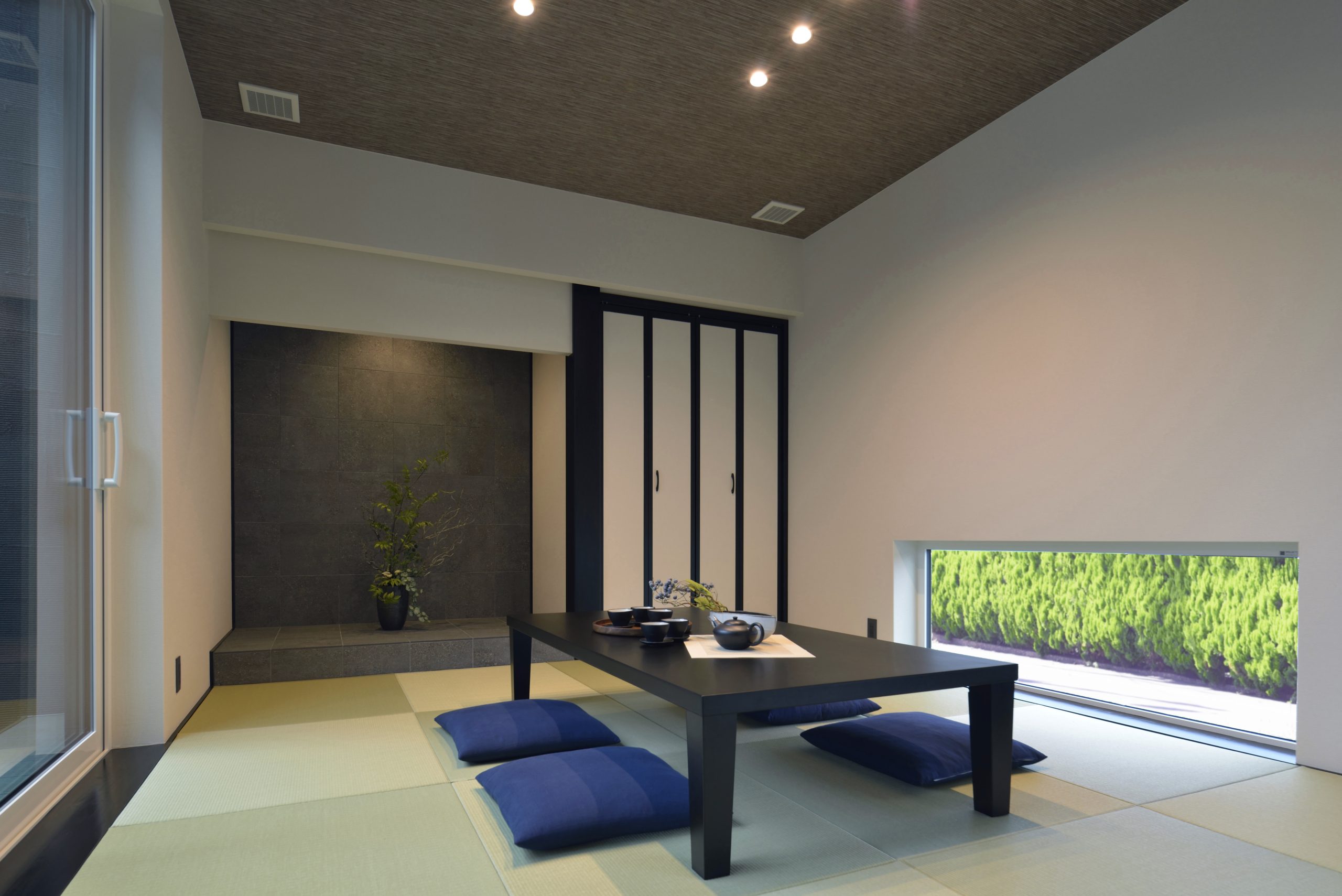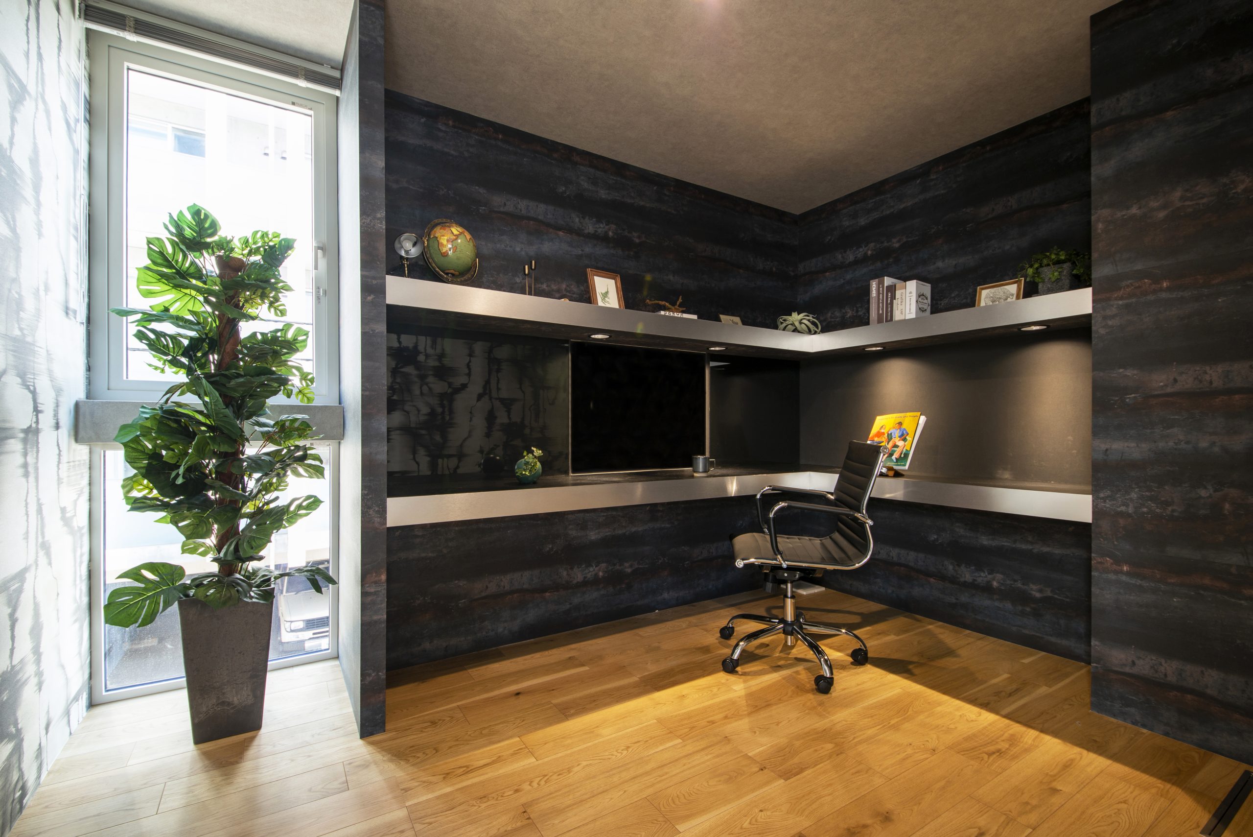 ●0.5Fは間接照明と黒を基調とした内装でまとめられたご主人様の趣味室