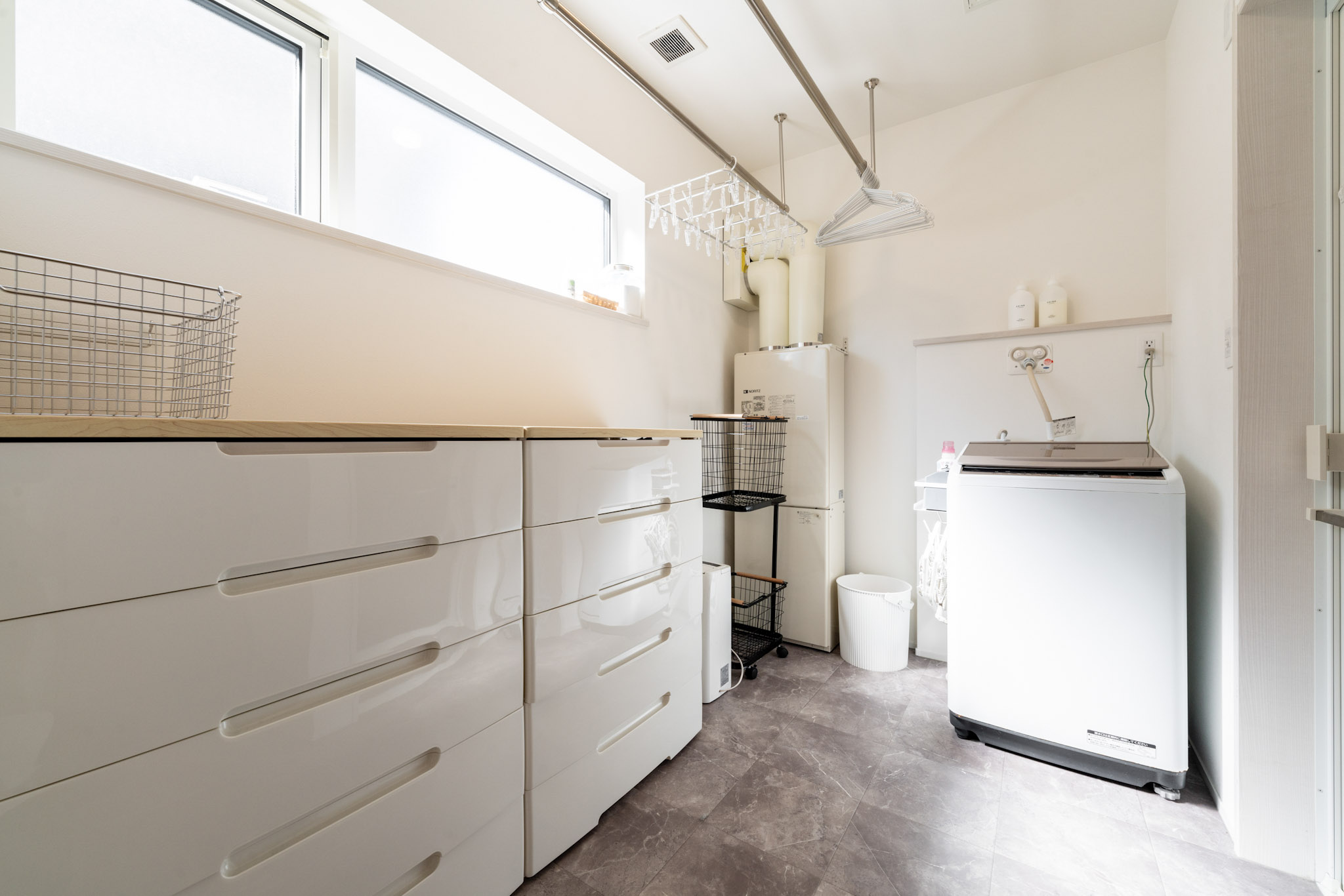 洗う・干す・片付けるが一か所で完結。共働き家族に嬉しい洗濯動線。