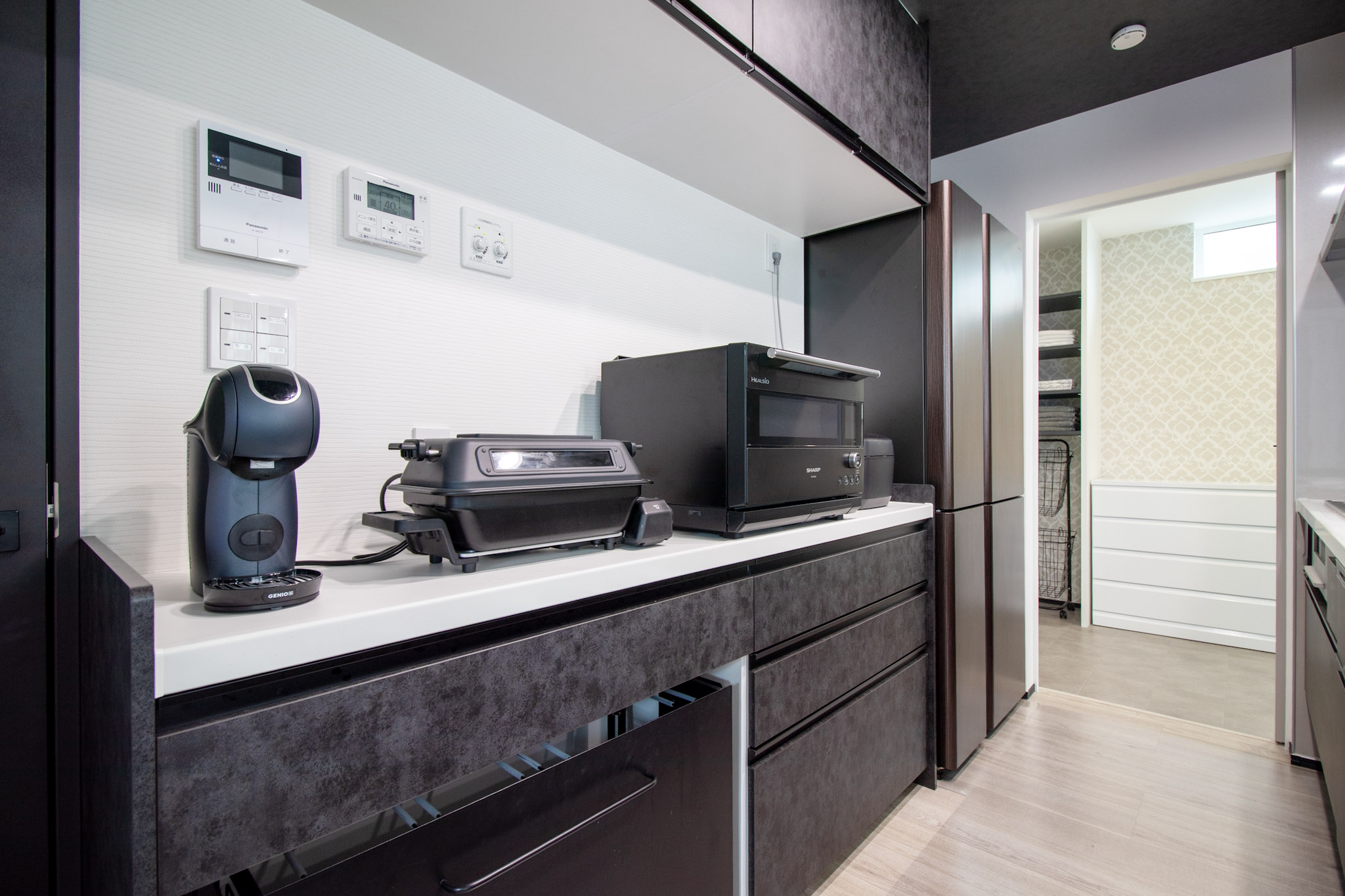 まとめ買いも安心のパントリー。家族分の食材をすっきり収納。