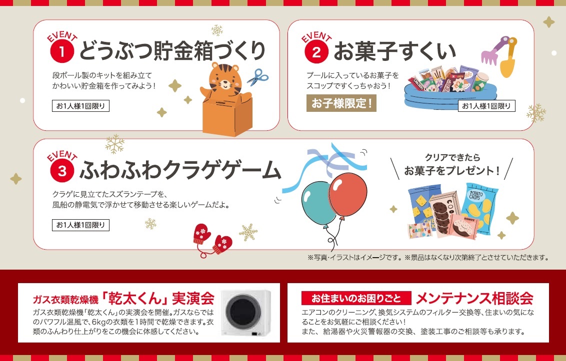 また、ガス衣類乾燥機「乾太くん」の実演会を開催。