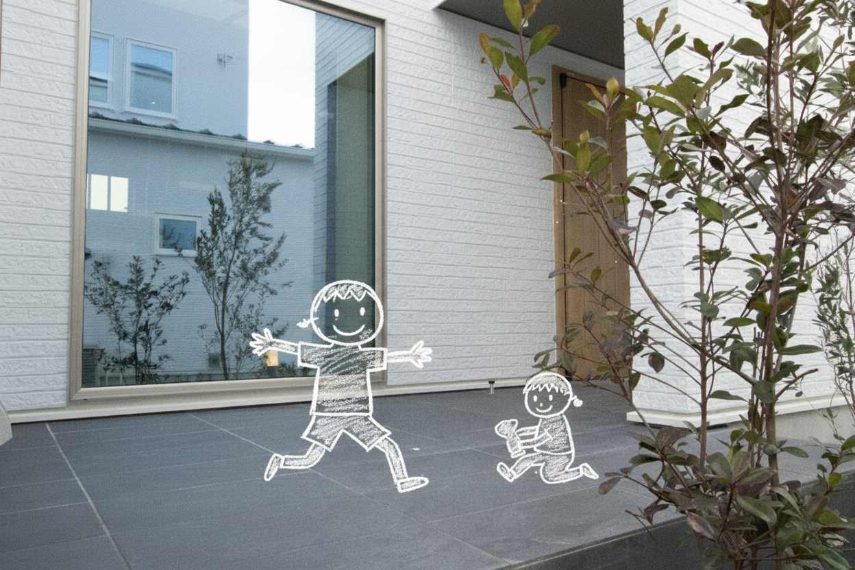 対面式キッチンからLDKとテラスを見渡せるため、家事をしながら外で遊ぶお子さまも見守れ、家族の気配を感じながら過ごせる住まい。
