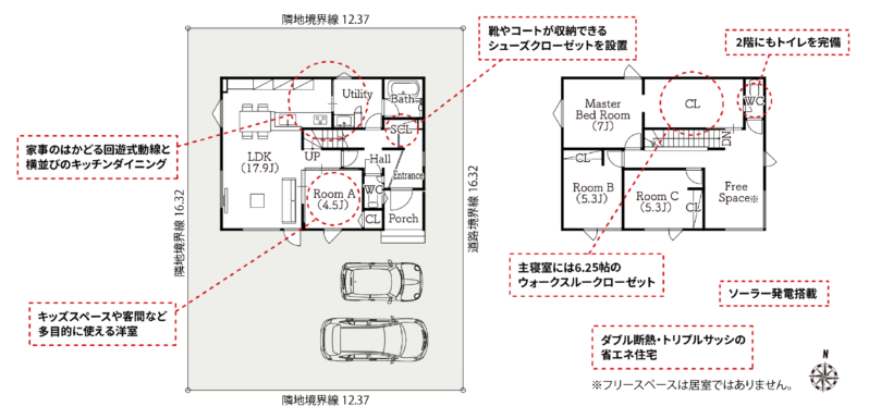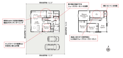 各所の収納や家事負担軽減に配慮した動線が嬉しい家